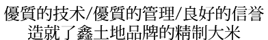 鐵等礦物質(zhì),無(wú)污染的環(huán)境,豐產(chǎn)的水稻資源,使鑫土地米業(yè)不斷發(fā)展壯大,成為綏化地區(qū)新崛起的一支精制大米生產(chǎn)的生力軍。