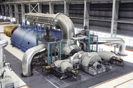 煙氣輪機是煉油廠催化裂化裝置能量回收系統的核心機組。在生產過程中,約有4%-7%的原料油轉化為焦炭,在再生器內燃燒,焦炭放出的熱量除部分用于加熱催化外,其余熱量加熱煙氣從再生器放出,這種從再生器放出的煙氣具有98-196kPa的壓力和約650-750℃的溫度,把大量高溫高壓煙氣,引入煙氣輪機,經膨脹作功后轉化為軸功輸出,驅動煉油廠空氣壓縮機或發電機組,以后回收這部分能量。