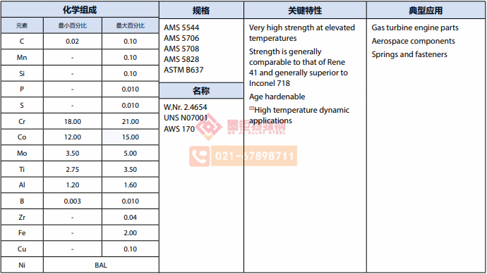 強度通常與 Rene 41 相當,且通常優于 Inconel 718